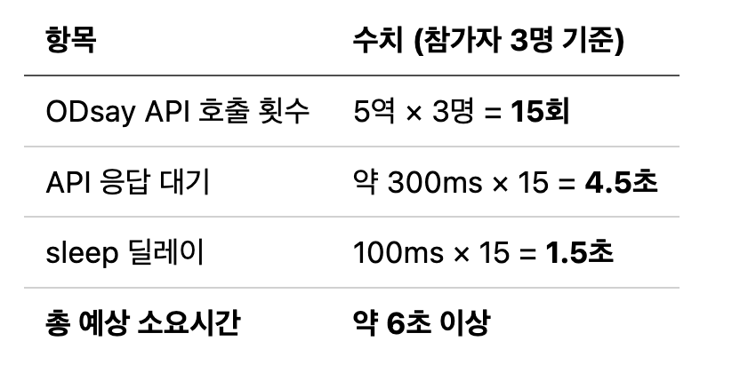 총 ODsay API 호출 = 후보역 수(5) × 참가자 수(N)